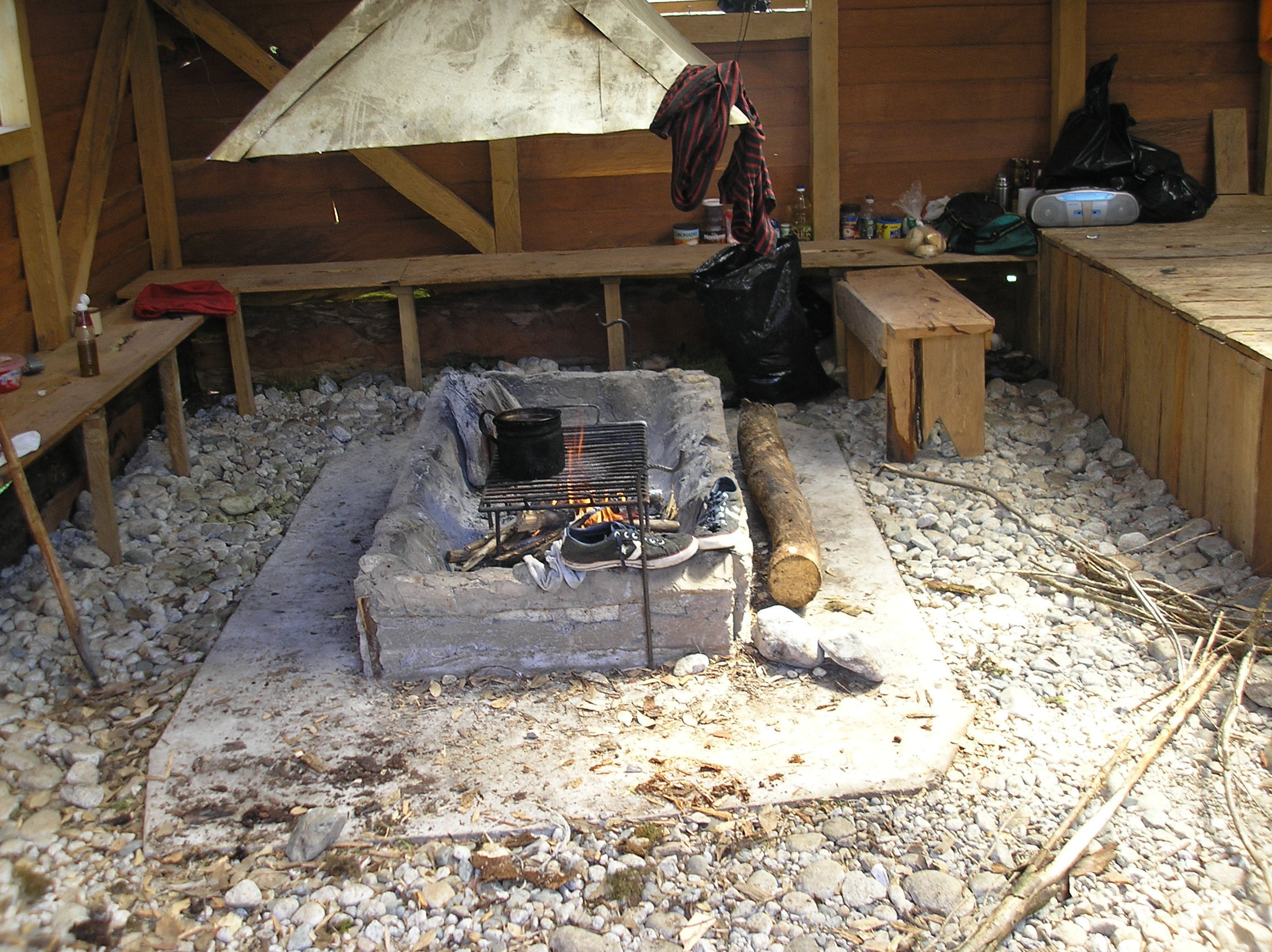 volvemos al campamento, por suerte en la zoa de acampada hay un gran cobertizo donde hacer fuego y secar las cosas.