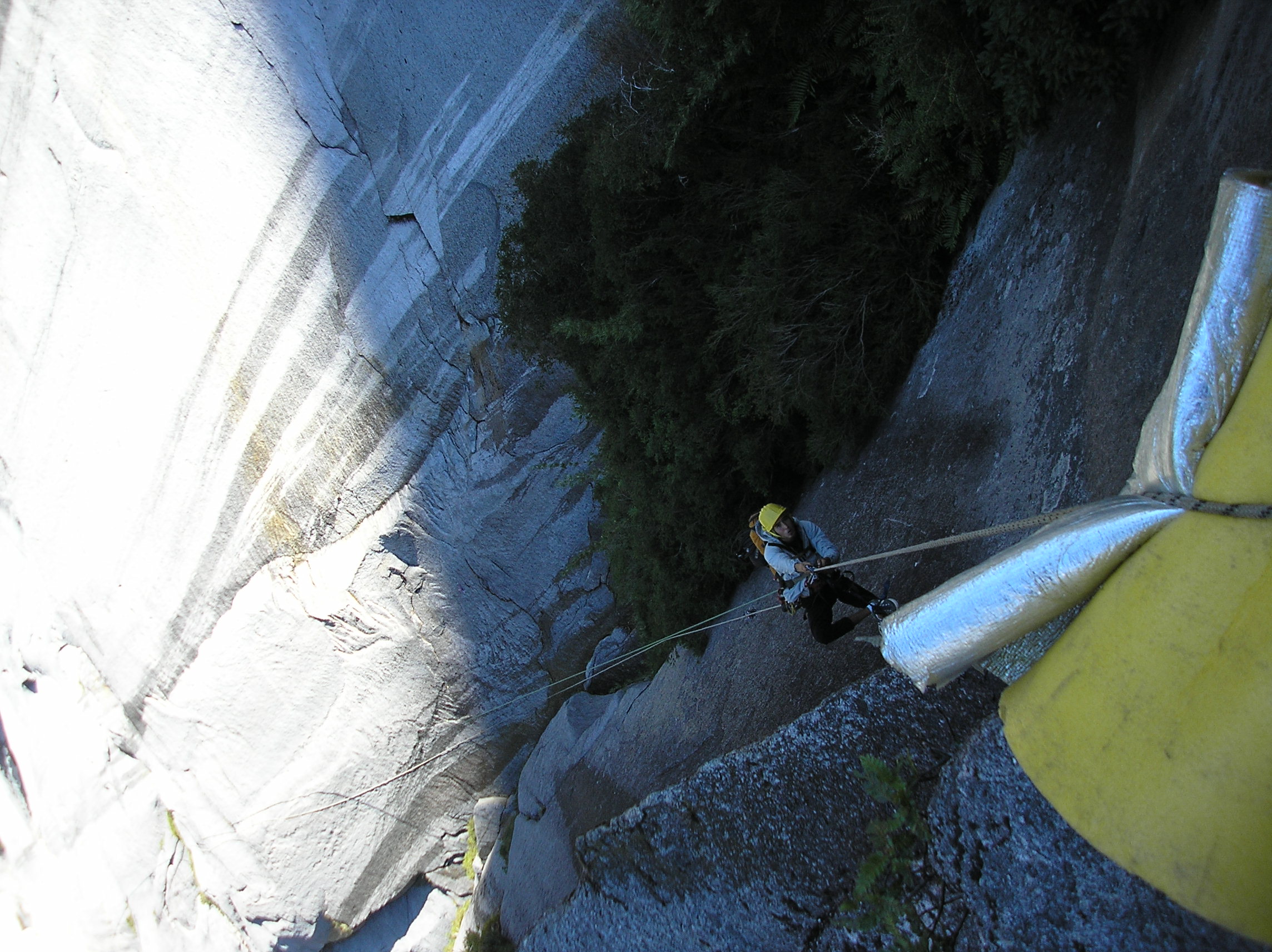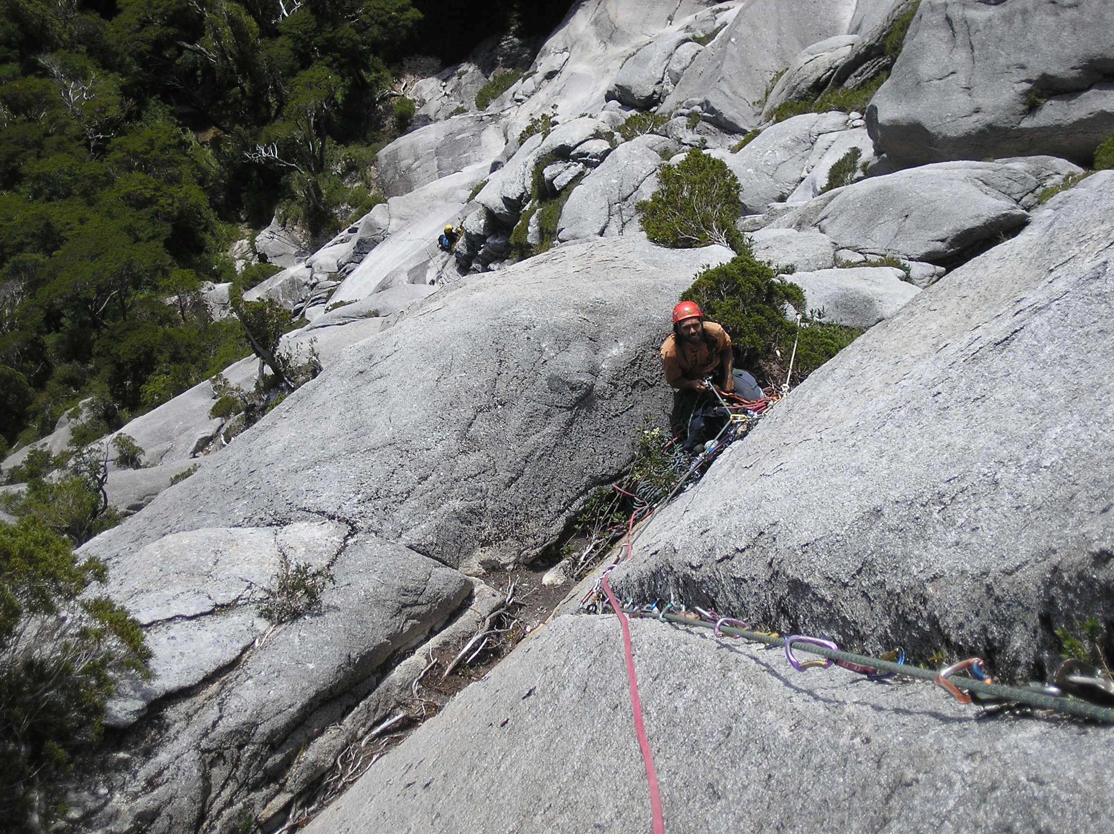 El 10 de marzo de 2006 coseguimos abrir los 4 primeros largos. Luego, el 12 de marzo abrimos el quinto largo, el más difícil, fijamos cuerdas y huimos por fuertes lluvias. El 15 de marzo, volvemos y solo conseguimos hacer un largo corto hasta Plaza Calaluña. Subimos con material de bivac y comida para quedarnos hasta finalizar la ruta, pero la lluvia no cesó. Decidimos abandonar y volver otro año. Ha sido un stage para trabajar la paciencia, la concordia y el compañerismo, ttambién la perseverancia. Nosotros ahora tenemos que irnos, hemos quedado en Buenos Aires para encontrarnos con los amigos que hemos hecho durante este viaje decasi 4 meses. En pocos días sale nuestro vuelo.