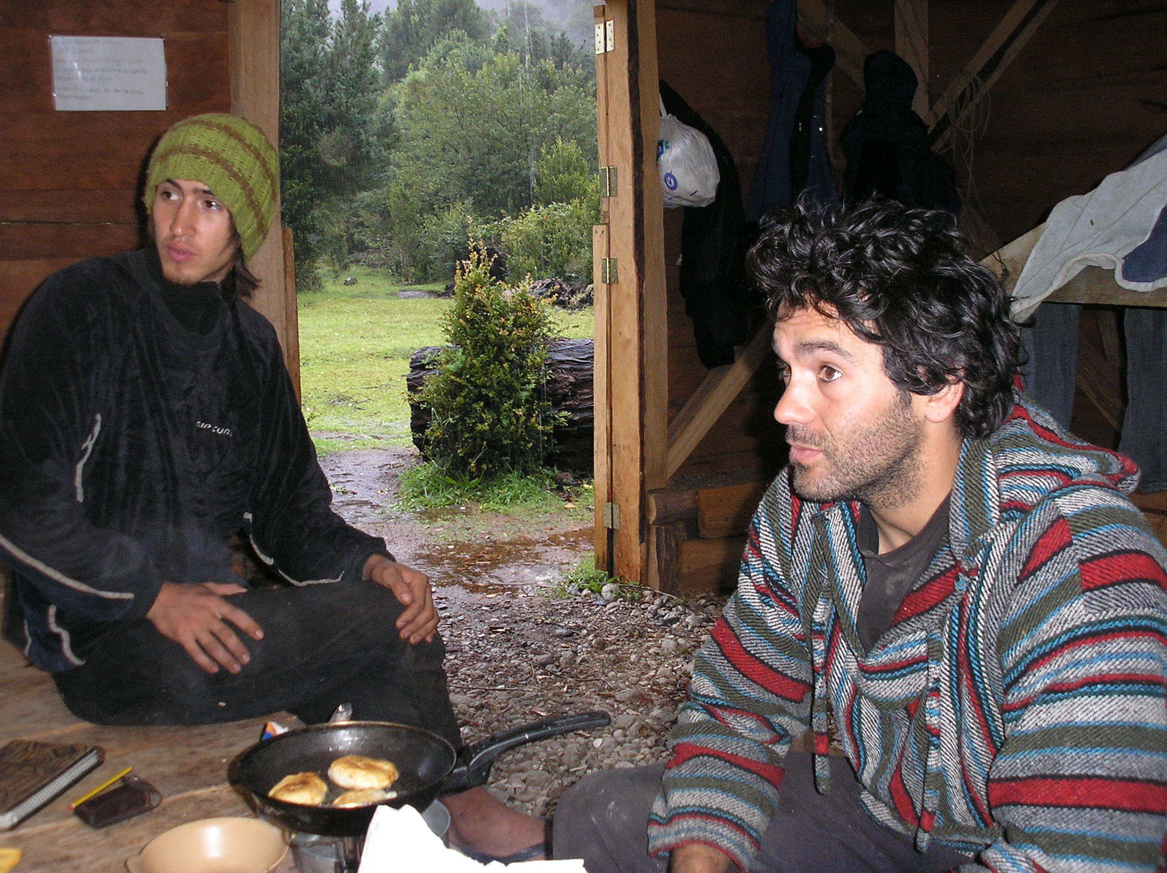 El 19 de febrero de 2006, Jordi y yo llegamos a Cochamó, una ciudad al sur de Chile. Isaac Cortés nos aconsejó visitar este lugar, es una selva donde se elevan paredes monolíticas de 1000 metros. Al otro lado de la bahía la vista del Cerro Yate levantándose 2110 msnm es impresionante. La traducción del nombre de Cochamó es abundancia de agua y cerca de la ciudad hay una localidad que se llama Pueblo Hundido. Sospechamos que aquí la lluvia debe ser uno de los habiantes más populares.