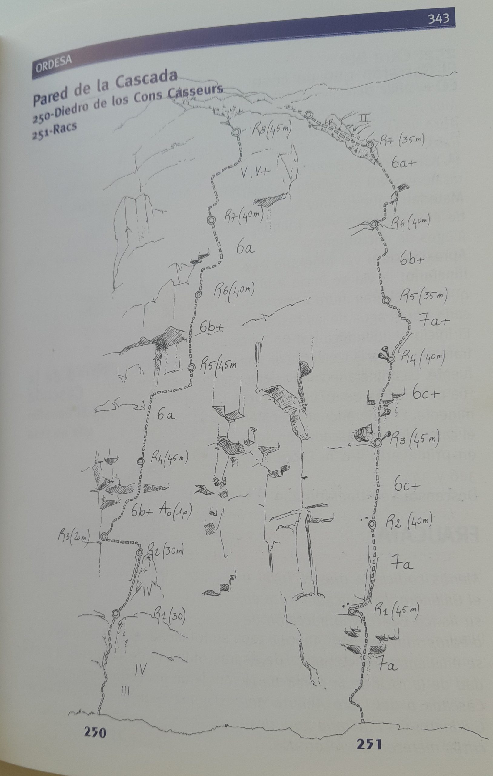 «Racs» 300 m, 7a+ (6c o 6b/A3 obligado): a vista en la Pared de la Cascada, Ordesa