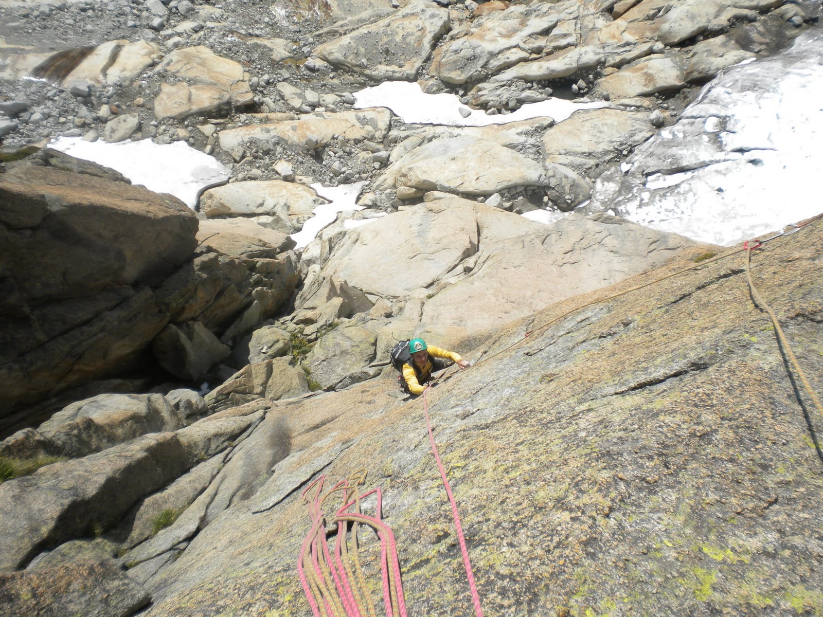 «Melissa, metissa d’Ibiza» 90 m, 7a. (6b+/A1 oblig.): primera repetición en el Premier Pointe Natillons, Envers les Agulles. Montblanc
