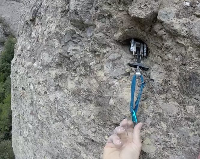 «Savia de Lacras» 20 m, 5+: una primera trad en el tocho del Buitre, Sant Benet. Montserrat