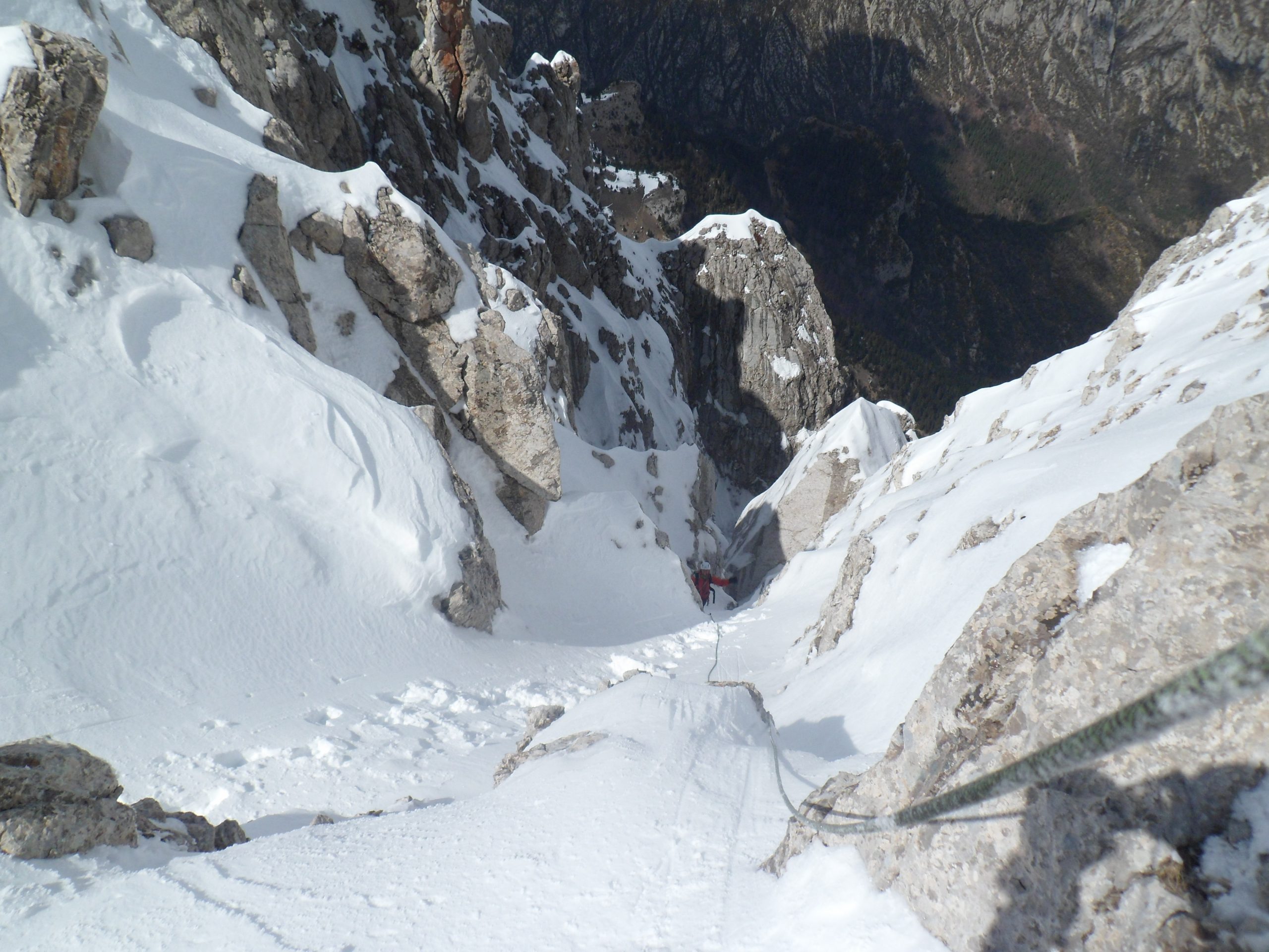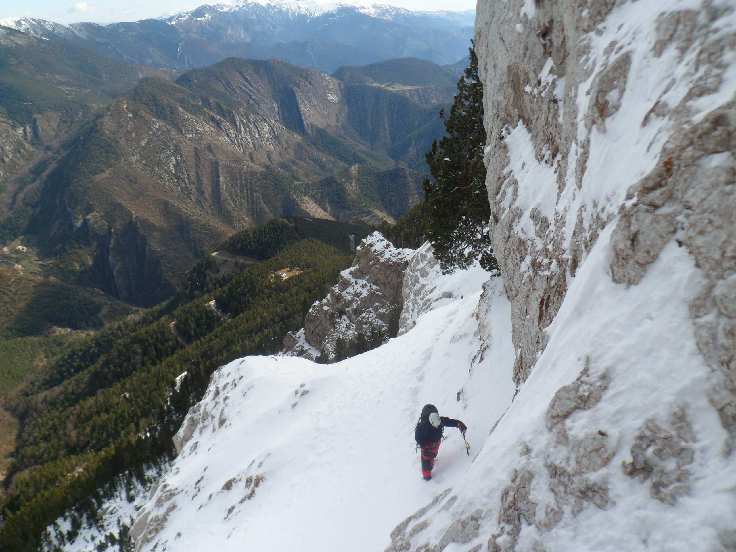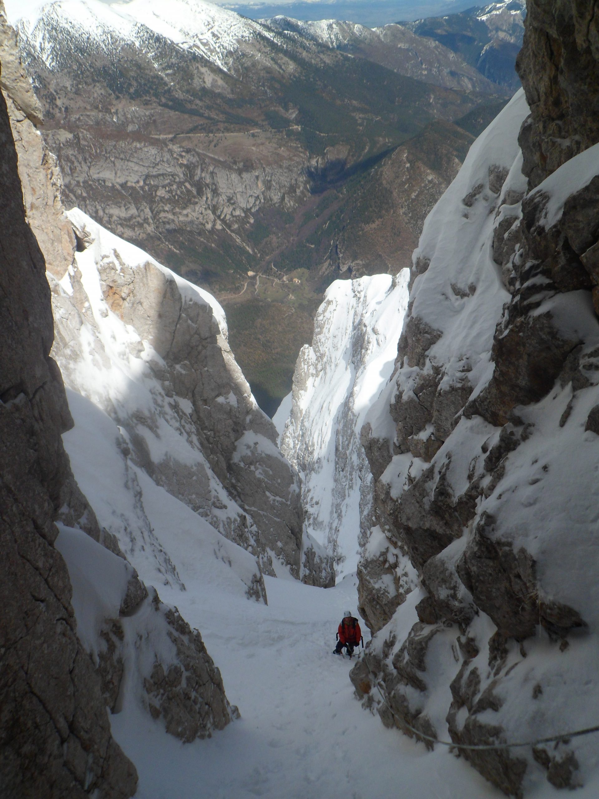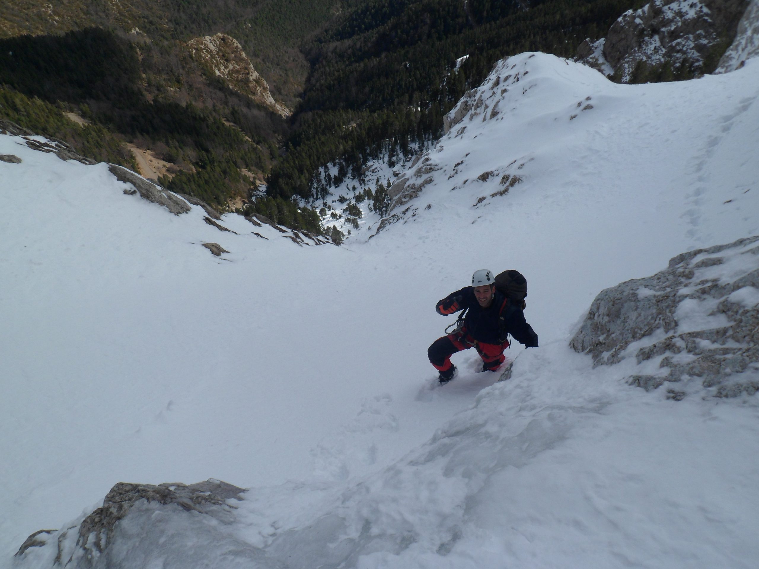 «Canal del Riambau» 500 m, MD, 85º/M4. Cara norte del Pedraforca