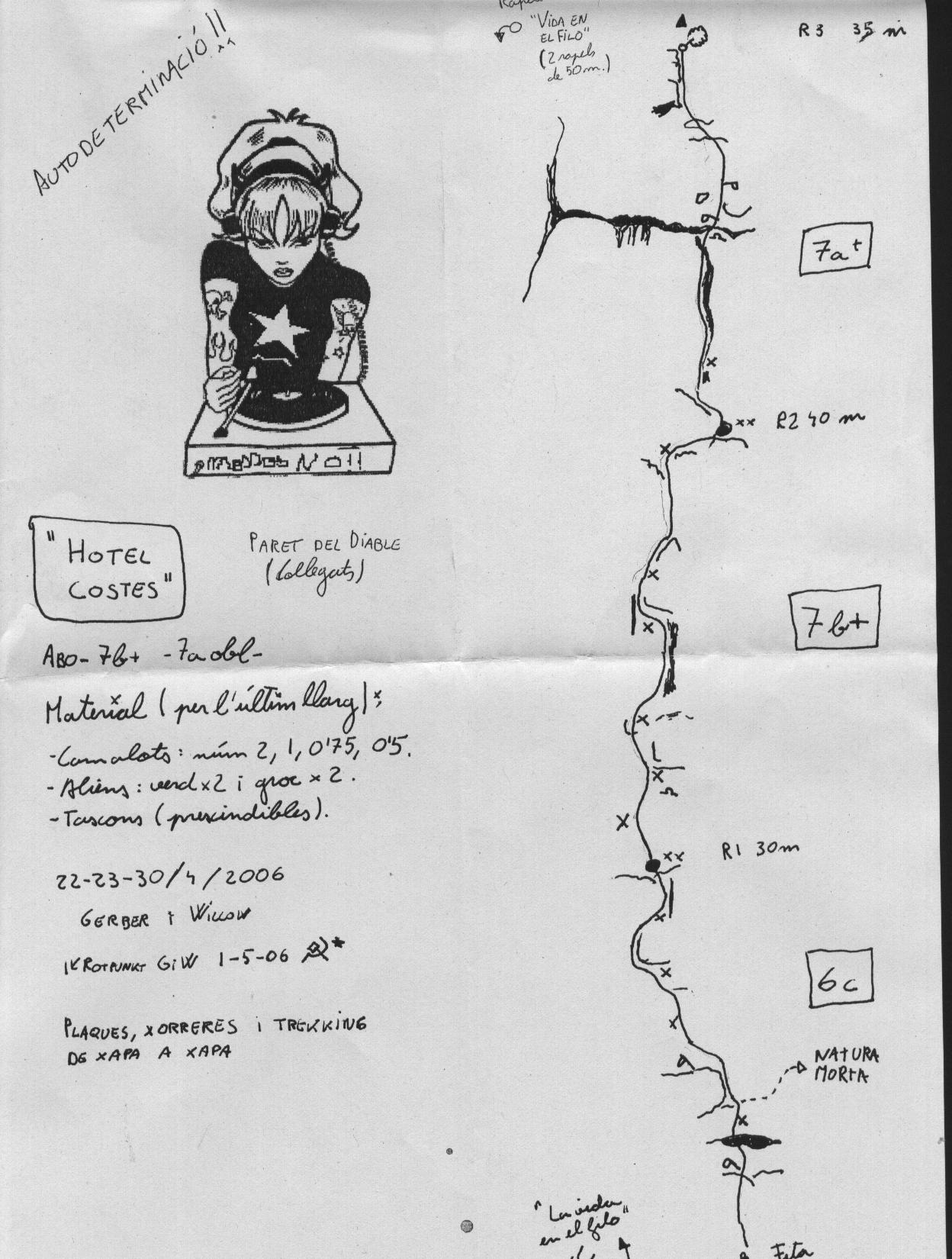 «Hotel Costés» 150 m, 7c ABO- (7a/+ oblig.): Repetición en la Paret del Diable, Collegats
