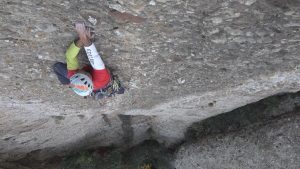 El 11 de octubre de 2016, con Victoria Romero, vuelvo a subir hasta la fisura encadenando los movimientos y emplazo un clavo en la fisura ciega. Pero no consigo salir de ella; el clavo no me da la suficiente seguridad para volar sobre él.