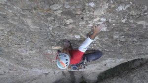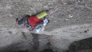 El 11 de octubre de 2016, con Victoria Romero, vuelvo a subir hasta la fisura encadenando los movimientos y emplazo un clavo en la fisura ciega. Pero no consigo salir de ella; el clavo no me da la suficiente seguridad para volar sobre él.
