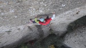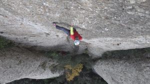 «Bóreas» 130 m, 8a ABO+ (7b oblig.): una primera trad en La Punxa, Els Flautats. Montserrat norte