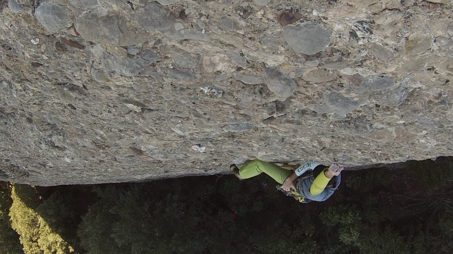 «Pecata Minuta» 55 m, 7b ABO: a vista en la Panxa del Bisbe. Sant Benet, Montserrat
